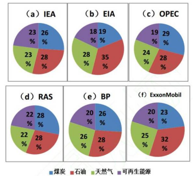 基準(zhǔn)情景下主流機(jī)構(gòu)和石油公司對(duì)2030年全球能源結(jié)構(gòu)的預(yù)測(cè)