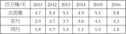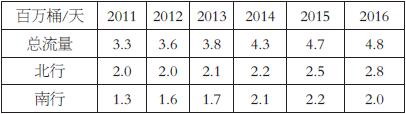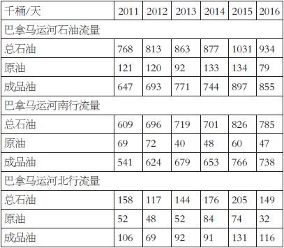 表為2011—2016年巴拿馬運(yùn)河石油流量表為2011—2016年巴拿馬運(yùn)河石油流量