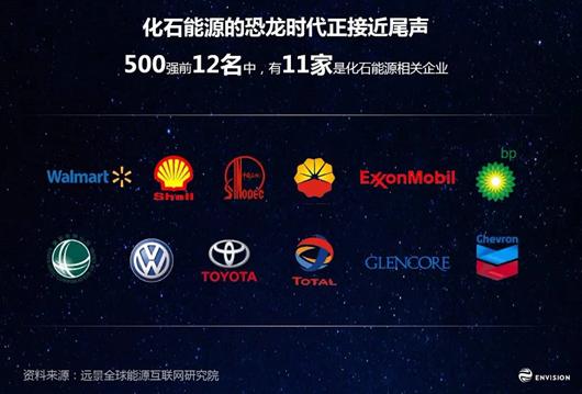 如果我們把視野轉(zhuǎn)到我們的經(jīng)濟社會,2015年的500強前12名當中,你會發(fā)現(xiàn)有11家是化石能源相關(guān)的企業(yè),其中9家是化石能源的生產(chǎn)和交易商。