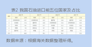 表2 我國(guó)石油進(jìn)口前五位國(guó)家及占比