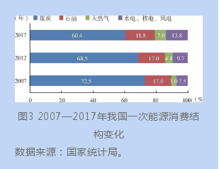 圖3 2007—2017年我國(guó)一次能源消費(fèi)結(jié)構(gòu)變化