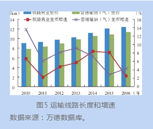 圖5 運(yùn)輸線路長(zhǎng)度和增速