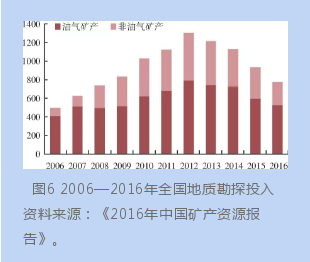 圖6 2006—2016年全國(guó)地質(zhì)勘探投入