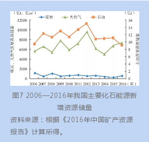 圖7 2006—2016年我國(guó)主要化石能源新增資源儲(chǔ)量