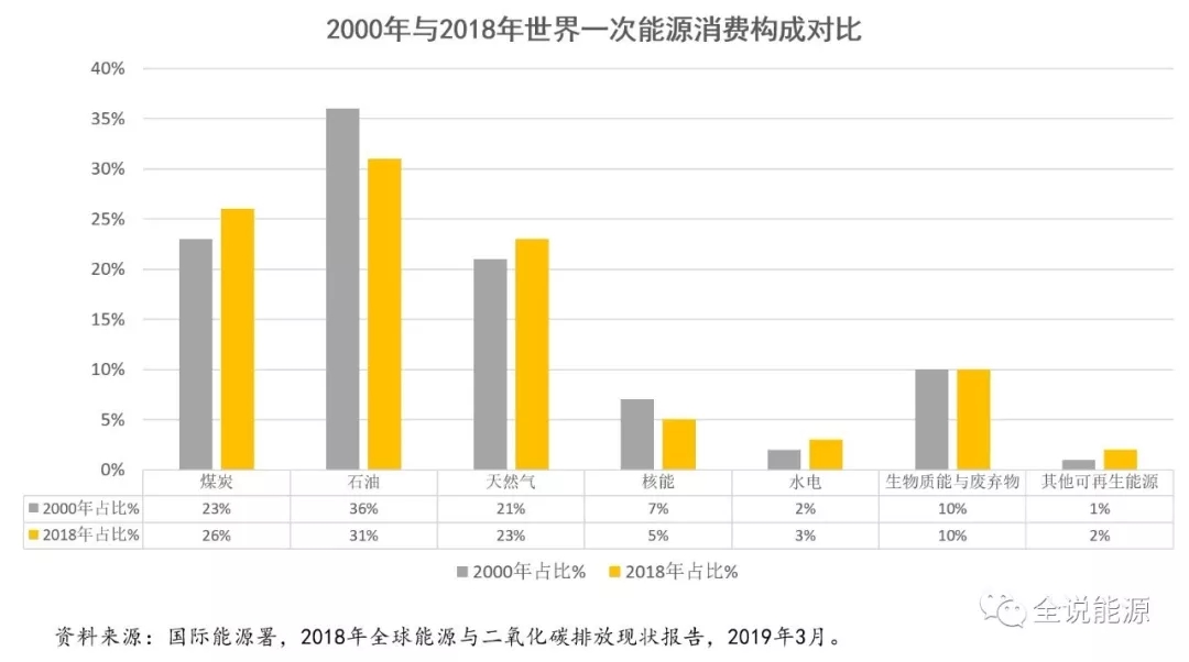 一、當(dāng)今世界仍是傳統(tǒng)化石能源時(shí)代,19年間無任何改變