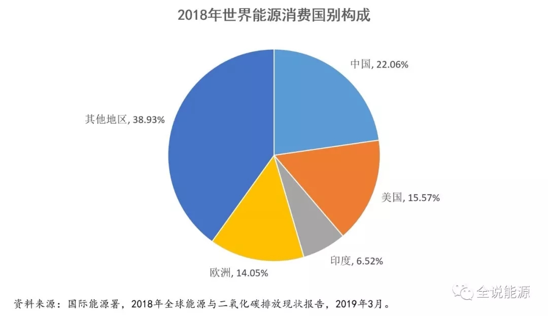 2018年,世界能源消費(fèi)增長(zhǎng)主要來源于中國(guó)、美國(guó)和印度三國(guó),三國(guó)合計(jì)的能源消費(fèi)增長(zhǎng)占了全球近70%的份額。