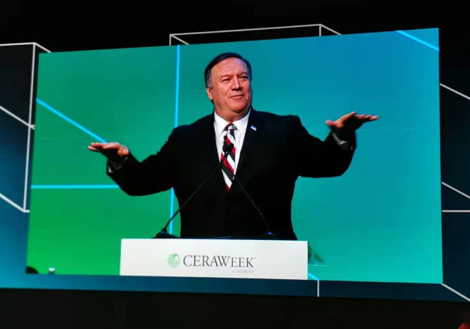 本屆能源周一開(kāi)場(chǎng)便大談特談能源地緣政治問(wèn)題,美國(guó)國(guó)務(wù)卿和能源部長(zhǎng)接連到位并做主旨演講,委內(nèi)瑞拉臨時(shí)總統(tǒng)瓜伊多委派“駐美大使”現(xiàn)身說(shuō)法,獲得滿堂喝彩。