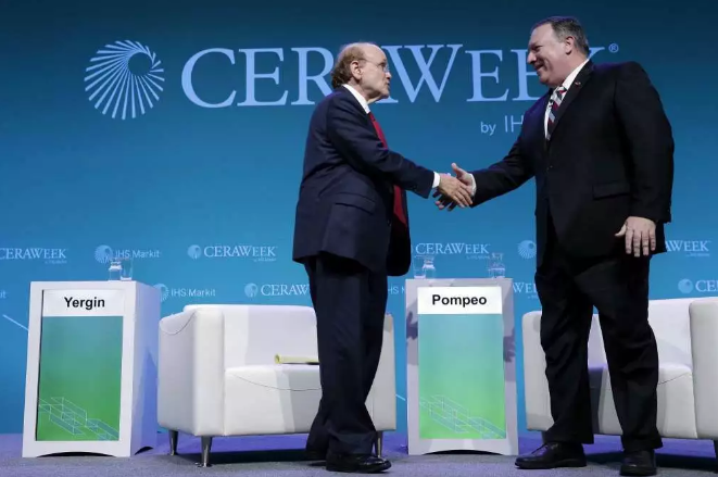 此外,能源周第二天下午,美國(guó)國(guó)務(wù)卿蓬佩奧現(xiàn)身并做主旨演講,并與主持人丹尼爾·耶金博士對(duì)話。蓬佩奧演講的核心是,美國(guó)要利用其在全球能源市場(chǎng)中地位的提升,來(lái)為其外交政策服務(wù)。蓬首先簡(jiǎn)要回顧了美國(guó)頁(yè)巖革命成功的歷程,并對(duì)其大加贊賞,指出其大大改善了美國(guó)能源地緣政治格局。“我們輸出油氣的背后是輸出美國(guó)的商業(yè)價(jià)值觀”,蓬如此強(qiáng)調(diào)。
