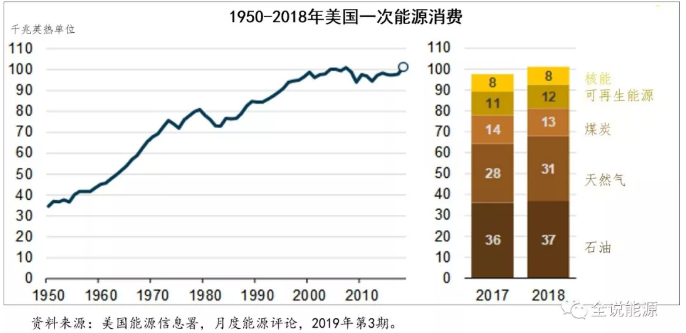 與2007年創(chuàng)出的前一紀(jì)錄對(duì)比,2018年美國(guó)一次能源消費(fèi)總量不但創(chuàng)造了新的紀(jì)錄,而且還增長(zhǎng)了0.3%。
