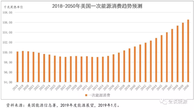因此,依據(jù)美國(guó)能源信息署的這一預(yù)測(cè),2018年美國(guó)一次能源消費(fèi)的恢復(fù)性增長(zhǎng),應(yīng)是偶發(fā)現(xiàn)象,不會(huì)持續(xù),從現(xiàn)在至2050年的30多年時(shí)間里,美國(guó)一次能源消費(fèi)僅會(huì)維持非常低的增長(zhǎng)速度。