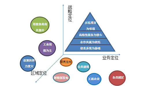 為進(jìn)一步明確綜合能源服務(wù)市場(chǎng)的開發(fā)思路,下面從市場(chǎng)戰(zhàn)略定位、區(qū)域定位、業(yè)務(wù)定位明確綜合能源服務(wù)重點(diǎn)業(yè)務(wù)的拓展方向和領(lǐng)域,從市場(chǎng)細(xì)分明確重點(diǎn)服務(wù)對(duì)象,從商業(yè)模式轉(zhuǎn)變及創(chuàng)新明確公司盈利模式。
