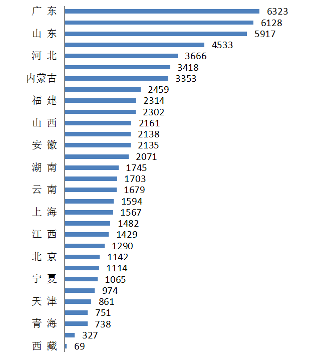 圖4 2018年全國(guó)各省(自治區(qū)、直轄市)全社會(huì)用電量(單位:億千瓦時(shí))