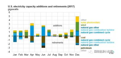 美國公營電力公司2017年12月新增的各種發(fā)電裝機(jī),藍(lán)顏色是天然氣,綠顏色是風(fēng)電,黃色是太陽能。風(fēng)電是天然氣發(fā)電的兩倍,太陽能和天然氣裝機(jī)不相上下。要知道美國發(fā)電的天然氣折人民幣只有7毛錢,天然氣發(fā)電的效率越來越高,原來50到55%,現(xiàn)在是65%,下一個(gè)沖擊的目標(biāo)是70%,也就是說一方氣可以從可以發(fā)5度電,到發(fā)7度電。這么高的發(fā)電效率,這么便宜的氣,為什么增長不上去?光伏和風(fēng)電卻大幅度增加,其中重要的原因是電價(jià),拼不過。最近晶科負(fù)責(zé)市場的副總裁告訴我,他們的光伏產(chǎn)品在美國報(bào)價(jià)折人民幣一毛多錢一度電,美國沒有土地的費(fèi)用、沒有稅收、沒有接入電網(wǎng)的高成本,也沒有人額外收各種各樣亂七八糟的費(fèi)用,就是這么便宜。在美國薄膜發(fā)電是0.29-0.33元/度,多晶硅0.31-0.36元/度,煤電0.41-0.97元/度,煤電要達(dá)到環(huán)保標(biāo)準(zhǔn),每個(gè)州都不一樣,有的州要脫重金屬,有的要碳封存,所以成本就增加。