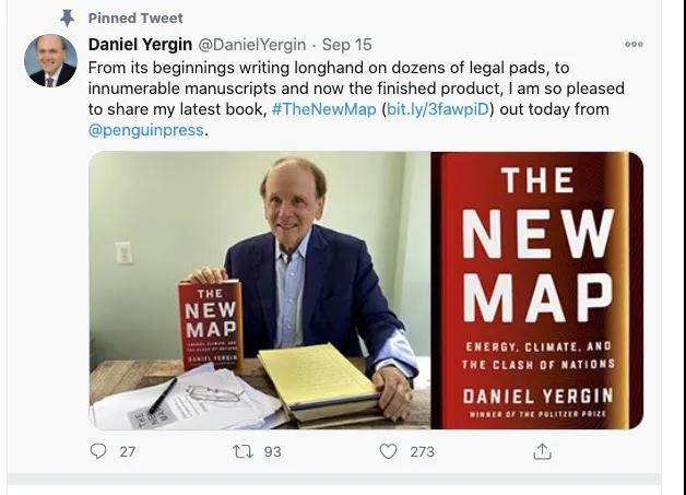 今年七月份的時(shí)候,就聽(tīng)說(shuō)耶金博士出了本新書:《新版圖:能源、氣候與國(guó)家沖突》(TheNewMap:Energy,Climate,andtheClashofNations),一直想一睹為快,遺憾一直沒(méi)有看到。前幾天,看到耶金博士作為“金牌主持人”,線上主持每年一度的“阿聯(lián)酋ADNOC首席執(zhí)行官圓桌會(huì)議”(ADNOC:阿布扎比國(guó)家石油公司),就在耶金博士的身后,很明顯的位置放了他的這本新書。而且,11月14日,耶金博士在線上參加年度“財(cái)新峰會(huì)”時(shí),其背后也放了這本書。