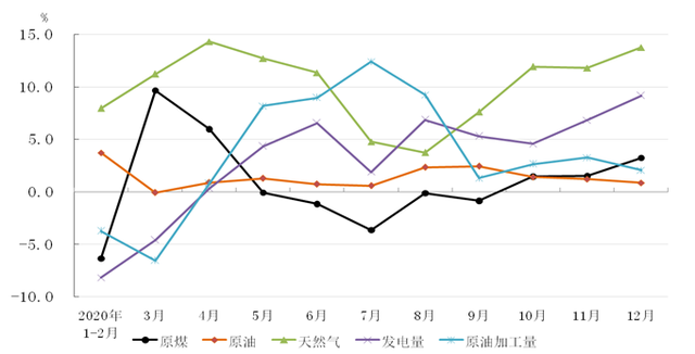 圖2020年分品種能源生產(chǎn)當(dāng)月同比增長(zhǎng)情況