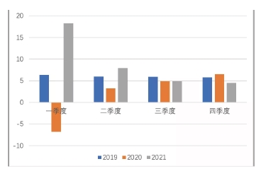 圖1 2019-2021年分季度GDP增速(%)