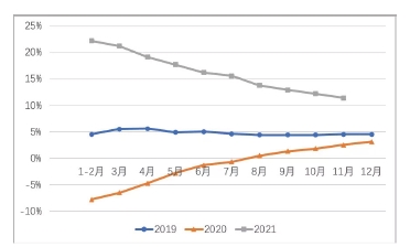 圖2 2019-2021年月度累計(jì)電力消費(fèi)增速