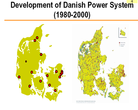 丹麥從1980年少數(shù)大電廠發(fā)展到2000年星羅棋布的分布式熱電廠