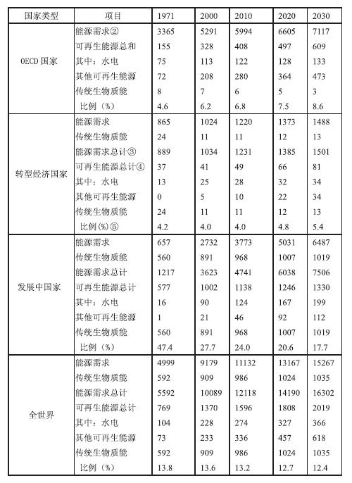 國際能源署編著的《世界能源展望》中,將可再生能源分為水電、其他可再生能源和生物質(zhì)能三塊分別計(jì)算,②其釋義如下:
