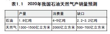 據(jù)有關(guān)部門預(yù)測(cè),中國(guó)未來石油、天然氣消費(fèi)量將繼續(xù)增大,預(yù)計(jì)到2020年石油消費(fèi)量達(dá)到4-5億噸,需求缺口將在2.2億噸-3.2億噸,對(duì)外依存度將增至60%;近年來,我國(guó)天然氣需求呈爆炸式增長(zhǎng),預(yù)計(jì)2004年至2020年間平均增速將達(dá)11%-13%,到2020年全國(guó)天然氣需求可望超過2000億立方米,比現(xiàn)在的300億立方米增長(zhǎng)5至6倍,天然氣缺口將為500億-700億立方米,天然氣在能源消費(fèi)結(jié)構(gòu)中的比例也將由2004年的2.6%增長(zhǎng)為10%,對(duì)外依存度逼近40%。(見表1.1)。