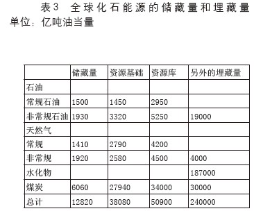 國(guó)際應(yīng)用系統(tǒng)分析研究所(IIASA)與世界能源理事會(huì)(WEC)1995年完成的“2050年以后時(shí)期全球能源展望”中說:我們預(yù)計(jì)未來能源基礎(chǔ)還會(huì)不斷擴(kuò)大,但是沒有人可以預(yù)測(cè)出市場(chǎng)條件、知識(shí)水平、勘探方法和生產(chǎn)技術(shù)會(huì)如何變化。我們不能用簡(jiǎn)單的方法和單純的數(shù)字來表述能源資源這樣復(fù)雜的概念。表3中儲(chǔ)藏量是指能源資源中目前可開發(fā)的部分,即在現(xiàn)有市場(chǎng)條件和利用現(xiàn)有技術(shù)水平可以開發(fā)的資源量。資源基礎(chǔ)包括那些隨著技術(shù)發(fā)展,經(jīng)濟(jì)上有競(jìng)爭(zhēng)力的、有潛在可開發(fā)的(2020年后)的資源。資源庫是儲(chǔ)藏量與資源量基礎(chǔ)之和。從表3所列出的化石能源為1.3萬億噸油當(dāng)量,而資源庫量則達(dá)到5萬億噸油當(dāng)量,這么多的化石能源至少可以使用100年。因此盡可能在21世紀(jì)的百年中可能會(huì)出現(xiàn)機(jī)構(gòu)性能源不足,但是絕對(duì)資源總量不會(huì)短缺,所以擔(dān)心是積累碳排放的增加。因此我們?nèi)绻軌蚪鉀Q化石能源應(yīng)用中的污染和碳排放問題,繼續(xù)使用化石能源是不成問題的。具體數(shù)字如表3。