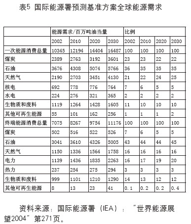 (一)國(guó)際能源署2004年的預(yù)測(cè)