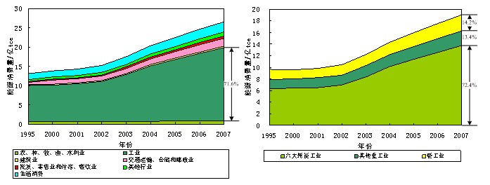圖2 中國歷年能源消費(fèi)情況1995-2007(按行業(yè)劃分)