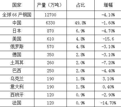 國(guó)際鋼鐵協(xié)會(huì)統(tǒng)計(jì)2015年11月各國(guó)鋼鐵產(chǎn)量