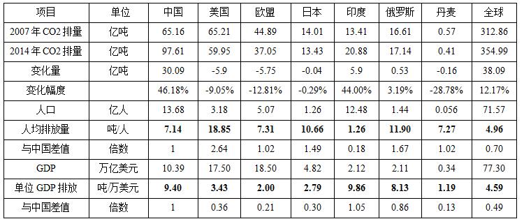 中國(guó)及世界各國(guó)人均二氧化碳排放比較(2014)
