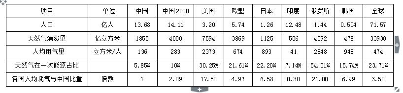 各國(guó)2014年天然氣消費(fèi)數(shù)據(jù)比較(含中國(guó)2020數(shù)據(jù))