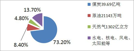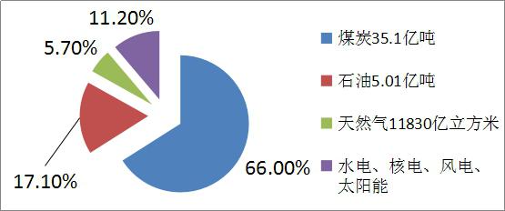 我國2014年能源生產(chǎn)總量為36億噸標(biāo)煤,能源總消費(fèi)量為42.6億噸標(biāo)煤。