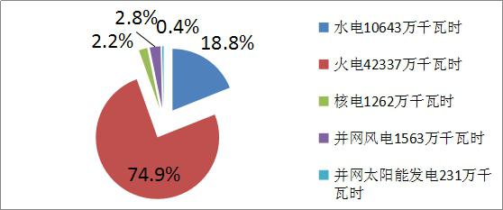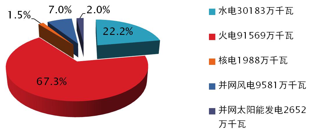 2014年我國電力裝機(jī)總?cè)萘繛?3.6億千瓦,全年發(fā)電總量為56495.8億千瓦時(shí)。