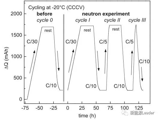 慕尼黑工業(yè)大學(xué)的VeronikaZinth等人借助中子衍射等手段,對鋰離子電池在-20℃低溫下的析鋰行為進行了研究【3】。中子衍射手段是近年來新興的一種檢測手段,相比于XRD,中子衍射對輕元素(Li、O、N等)更為敏感,因此非常適合對鋰離子電池進行無損檢測。