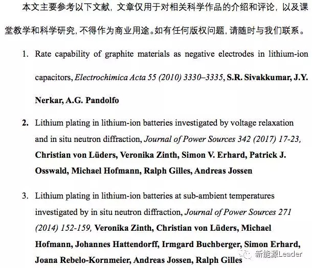 上述研究表明,低溫下充電時,由于動力學(xué)條件變差,不僅僅會導(dǎo)致電池容量的下降,還會因為石墨嵌鋰速度降低,而在負極表面析出金屬鋰,雖然在經(jīng)過一段時間的擱置后,這部分金屬鋰還能夠再次嵌入到石墨內(nèi)部,但是在實際使用中,擱置時間往往較短,不能保證全部的金屬鋰都能夠再次嵌入到石墨的內(nèi)部,因此可能會導(dǎo)致部分金屬鋰持續(xù)存在負極的表面,不僅會影響鋰離子電池的容量,還有可能會產(chǎn)生危害鋰離子電池安全的鋰枝晶,因此要盡量避免低溫下對鋰離子電池進行充電,必須要在低溫下充電時要使用盡量小的電流,并在充電結(jié)束后,保證充分的擱置時間,以消除石墨負極的金屬鋰。