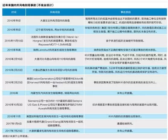2016年2月16日和2月20日,大唐河北烏登山風(fēng)場和山西偏關(guān)水泉風(fēng)場發(fā)生風(fēng)機(jī)倒塔、造成設(shè)備損壞的事件。事后,大唐集團(tuán)通報披露了兩起事故的原因。通報內(nèi)容顯示,河北烏登山風(fēng)電場110號風(fēng)機(jī)倒塔事故的直接原因是葉片質(zhì)量出現(xiàn)問題。山西偏關(guān)水泉風(fēng)場項(xiàng)目14號風(fēng)機(jī)倒塔,事故的直接原因是風(fēng)機(jī)振動值嚴(yán)重超標(biāo),造成法蘭疲勞開裂,導(dǎo)致風(fēng)機(jī)倒塔。