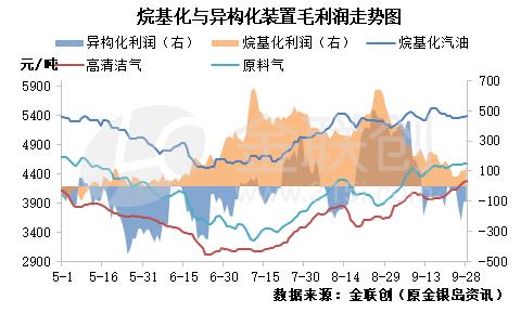 本周,烯烴深加工裝置整體運(yùn)營情況不佳,多數(shù)深加工廠家利潤下降明顯,甚至跌破成本線。根據(jù)金聯(lián)創(chuàng)的監(jiān)測數(shù)據(jù)顯示,烷基化裝置周平均毛利潤93.5元/噸,環(huán)比大幅下降48.3%;異構(gòu)化裝置本周平均毛利潤繼續(xù)維持倒掛,每噸虧損91.1元左右,環(huán)比擴(kuò)大33%;芳構(gòu)化裝置本周理論虧損繼續(xù)放大至371.6元/噸。