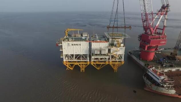 11月9日4時(shí)8分,世界首個(gè)分體式海上升壓站——龍?jiān)措娏Υ筘S風(fēng)電場(chǎng)海上升壓站一次受電成功。