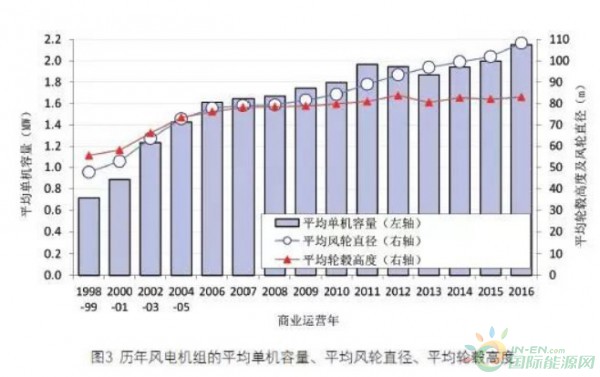 產(chǎn)業(yè)數(shù)據(jù)顯示,2016 年,美國(guó)新增風(fēng)電機(jī)組的平均風(fēng)輪直徑變得更大,從而可以使機(jī)組捕獲更多風(fēng)能;輪轂也變得更高,機(jī)組得以在更高處獲取更佳的風(fēng)能資源。這一年,新吊裝機(jī)組的平均風(fēng)輪直徑達(dá)到108 米,比過(guò)去5 年的平均值增長(zhǎng)了13% ;新吊裝機(jī)組的平均輪轂高度為83 米,比過(guò)去5 年的平均值提高了1%。機(jī)組的平均單機(jī)容量也隨之增加,2016 年新增風(fēng)電機(jī)組的平均單機(jī)容量為2.15 兆瓦,比過(guò)去5 年的平均值提高了11%。