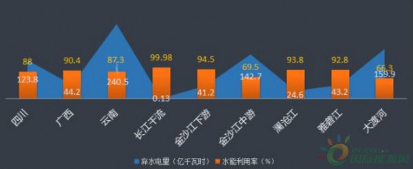 圖3. 主要地區(qū)前三季度棄水量和水能利用率
