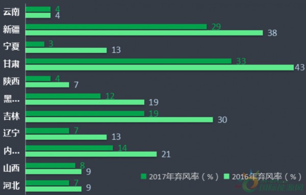 圖4. 各省區(qū)2016-2017棄風(fēng)率對比