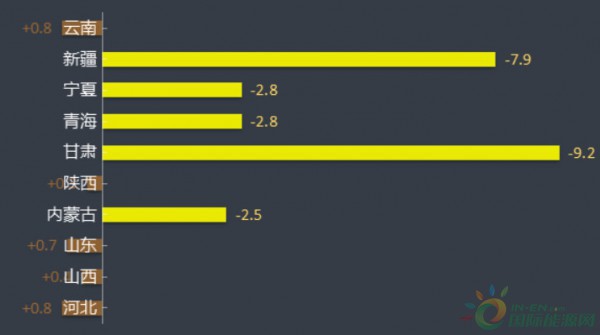光伏方面,前三季度棄光電量達(dá)到51億千瓦時,其中河北、山西、山東、陜西、云南等省區(qū)棄光率有所上升,甘肅、新疆、青海、寧夏、內(nèi)蒙古等地區(qū)棄光率下降明顯。甘肅和新疆棄光率已降至 20%左右,但陜西、甘肅和新疆仍然是限電風(fēng)險高發(fā)地區(qū)。