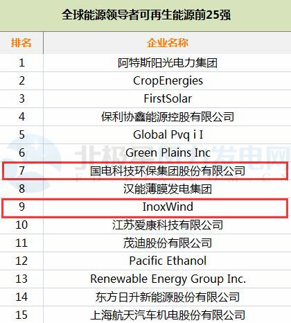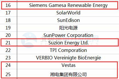 日前,全球資源平臺湯森路透(Thomson Reuters)公布了“全球能源領導者前100強榜單”(Top 100 Global Energy Leaders),這是業(yè)內(nèi)首次對當今領先的能源公司進行的全面評估。這項評估亦包括四個能源子行業(yè)的25強排名,分別為油氣、油氣相關設備與服務、可再生能源和多項公共事業(yè)。在可再生能源25強榜單中,6家風電企業(yè)上榜。以下為全名單: