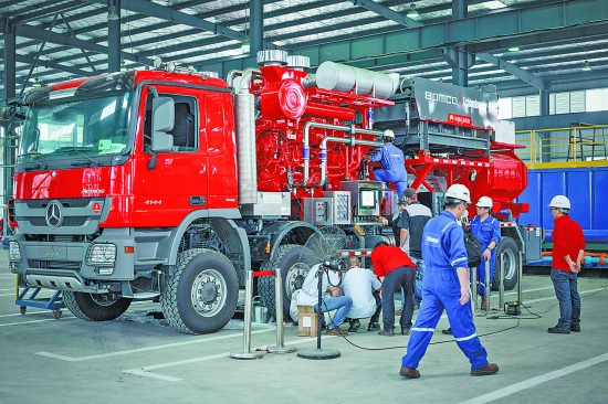 寶石機(jī)械公司成都分公司專用車公司2300型壓裂車生產(chǎn)現(xiàn)場(chǎng)。通訊員陳立希攝