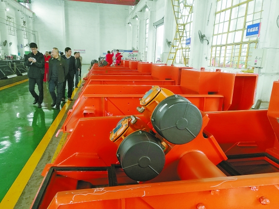 寶石機(jī)械公司成都分公司專用車公司雙軌跡振動(dòng)篩生產(chǎn)現(xiàn)場(chǎng)。記者吳夏炎攝