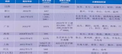 各省海上風(fēng)電規(guī)劃動(dòng)態(tài)調(diào)整情況