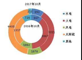 圖1 截至2017年10月底我國(guó)分類型新增裝機(jī)情況