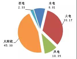 1-10月,全國(guó)僅新增太陽(yáng)能裝機(jī)比重增加。其中,新增水電占新增總裝機(jī)的8.95%,較上年同期下降1.93個(gè)百分點(diǎn);新增火電裝機(jī)比重達(dá)33.3%,較上年同期下降5.2個(gè)百分點(diǎn);新增核電裝機(jī)比重2.18%,較上年同期下降6.9個(gè)百分點(diǎn);新增風(fēng)電占10.7%,較上年同期下降1.85個(gè)百分點(diǎn);新增太陽(yáng)能發(fā)電裝機(jī)占44.9%,較上年同期增加15.8個(gè)百分點(diǎn)。