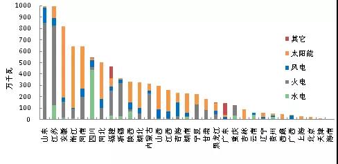 2017年1-10月,我國(guó)新增裝機(jī)主要集中在山東、江蘇、安徽、浙江、河南、四川、河北、福建、新疆等省份(新增裝機(jī)均在360萬(wàn)千瓦以上),占新增裝機(jī)總量的67.5%;