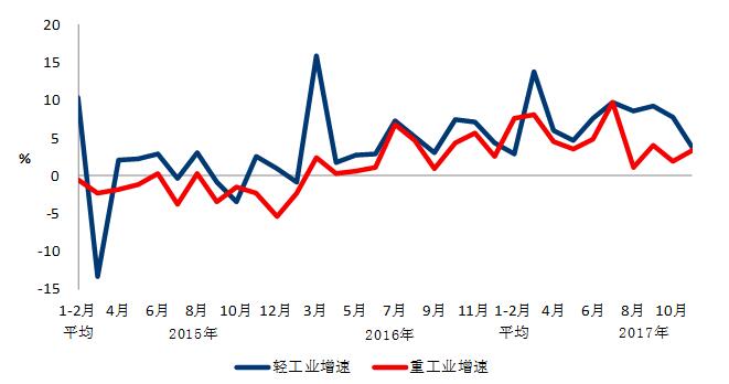 圖 2 2015年以來分月輕、重工業(yè)用電量增速情況