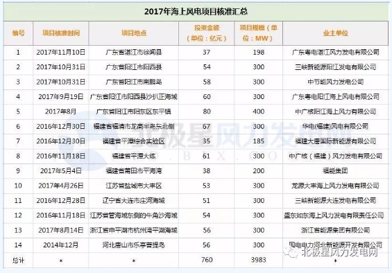 2017年即將過去,回首這一年,風(fēng)電行業(yè)有許多可圈可點值得記念的部分。北極星風(fēng)力發(fā)電網(wǎng)對2017年風(fēng)電行業(yè)的方方面面做了獨家梳理,今天發(fā)布的是——《2017年海上風(fēng)電項目核準(zhǔn)匯總》。